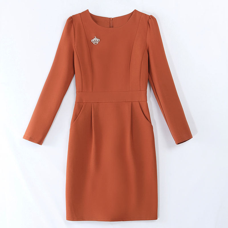 Autumn hooded mid-rise solid color round neck dress temperament trend elegant fashion