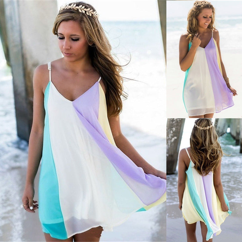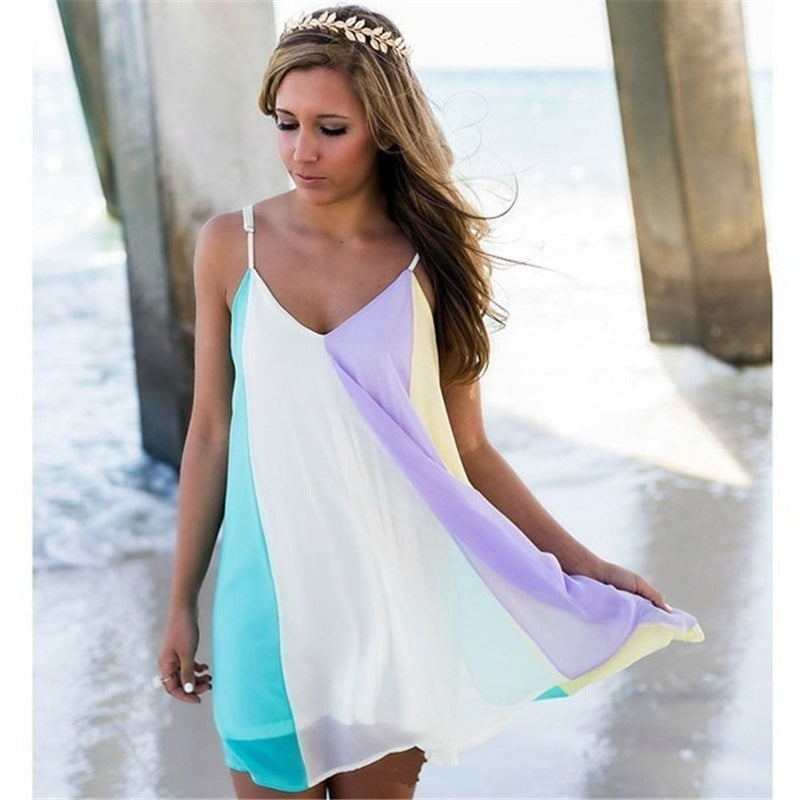 Chiffon Rainbow Sling Dress Beach Dress