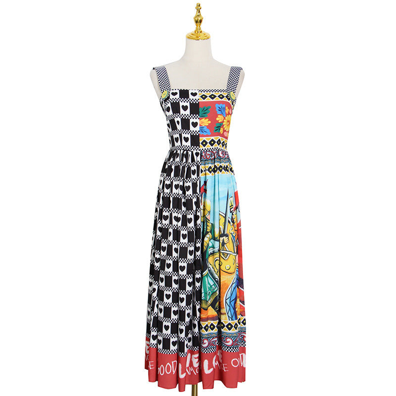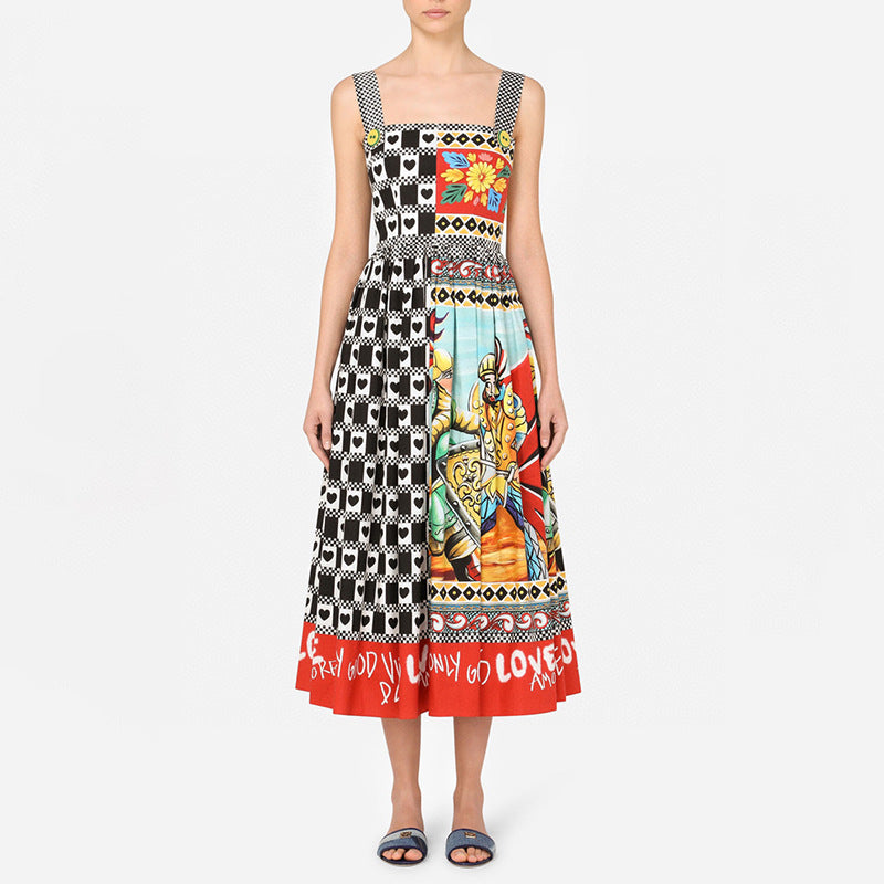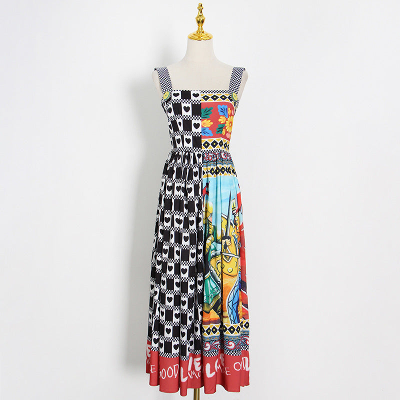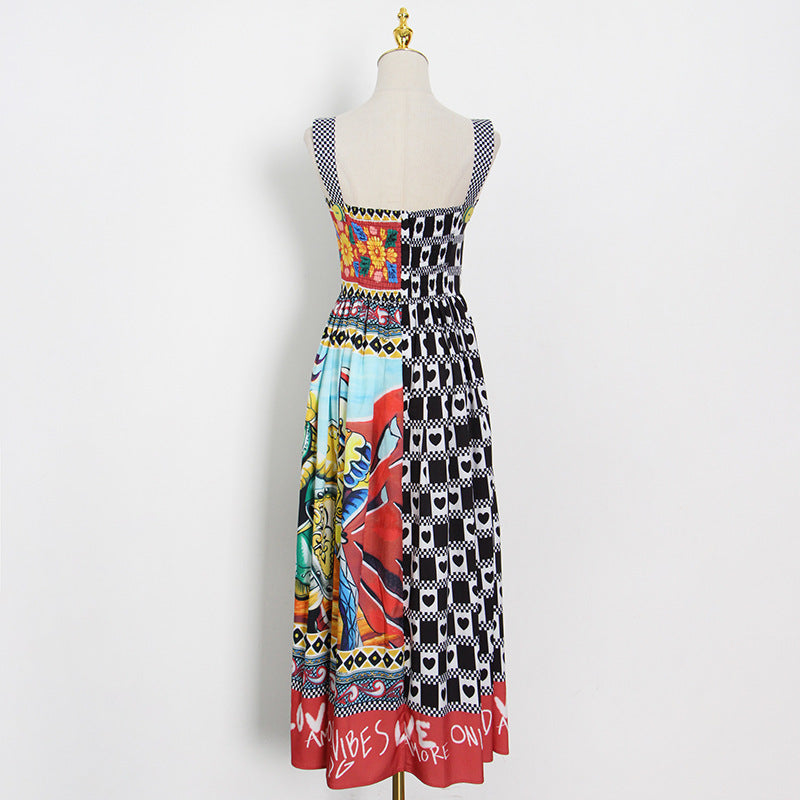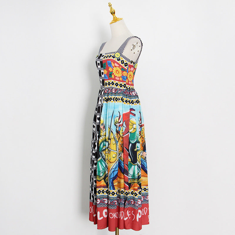 Dress Suspenders High-waist Slim-fit Square-neck Midi Dress