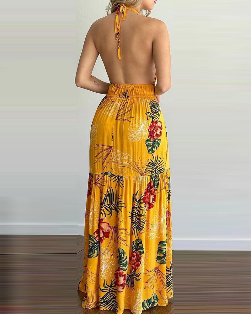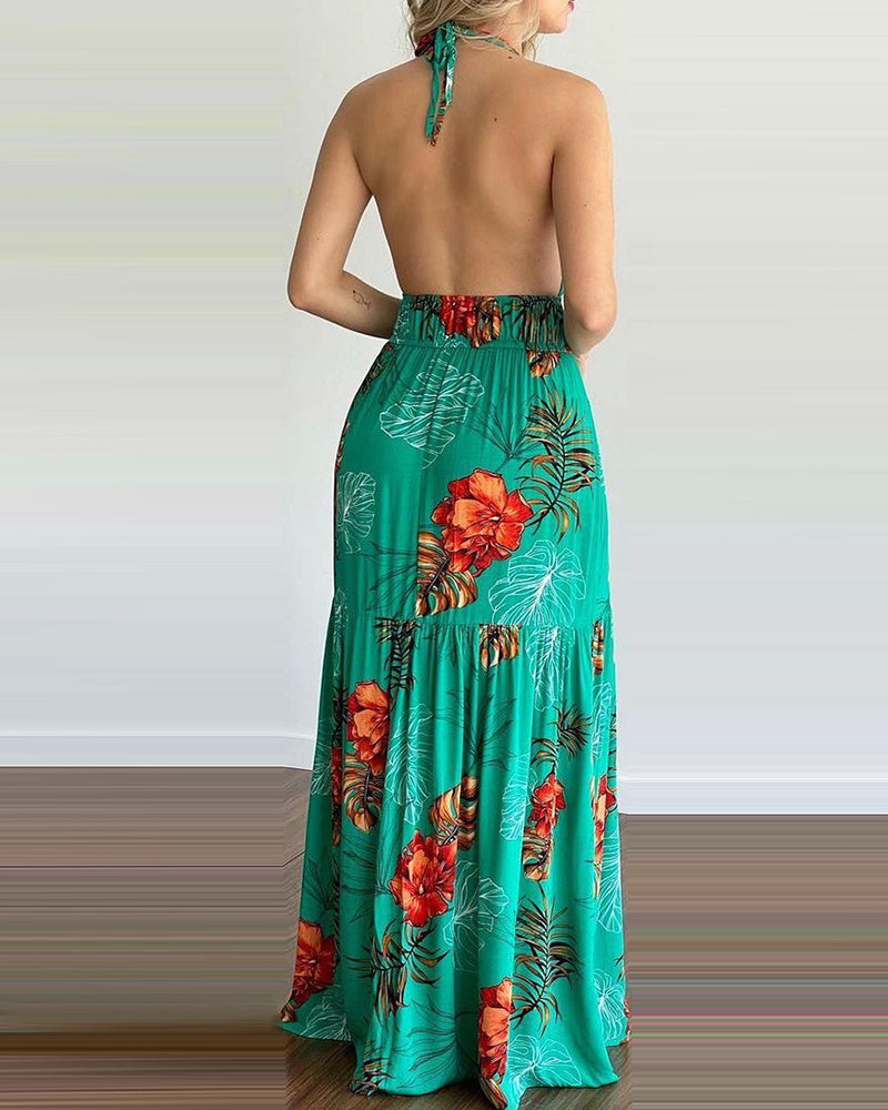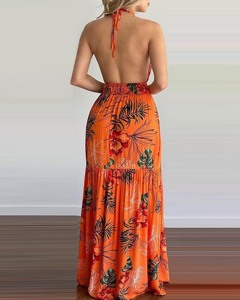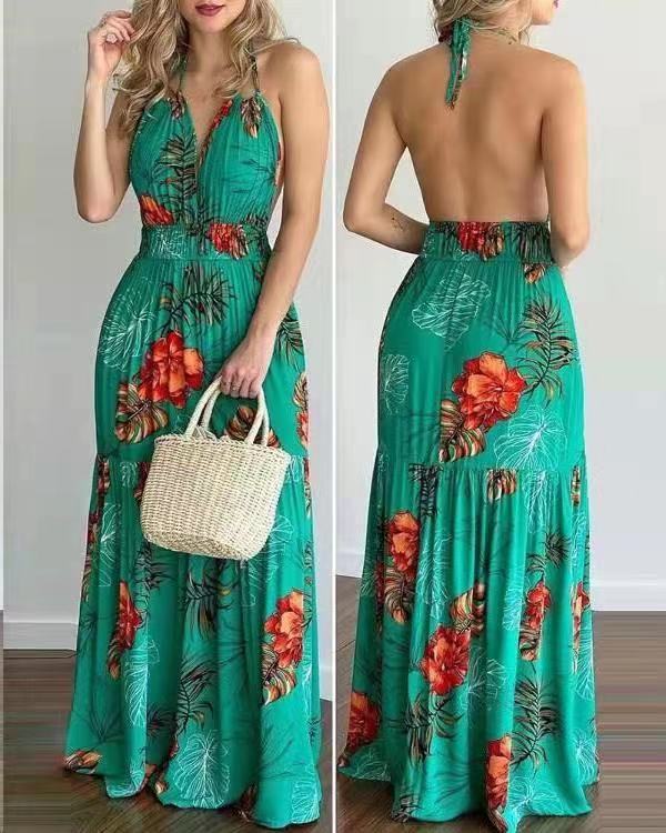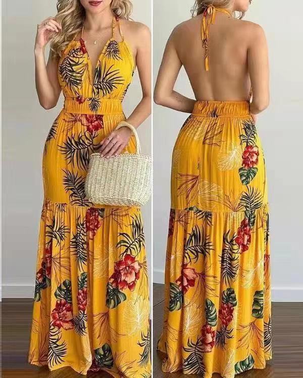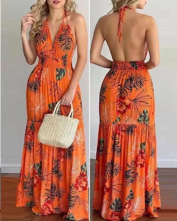 Explosive Ebay New Women's Halter Fashion Printed Dress