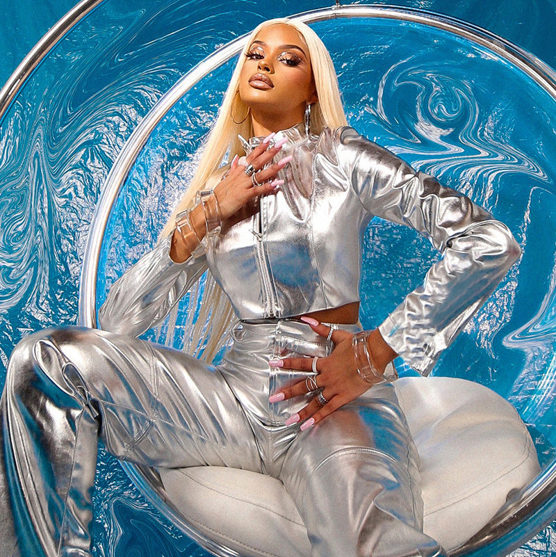 Fall Winter Fashion PU Metallic Collar Zipper Coat For Women