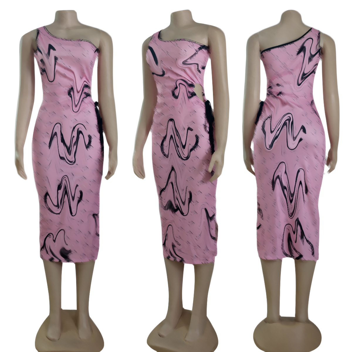 Fashion Women's Wear One Shoulder Sleeveless Printed Dress