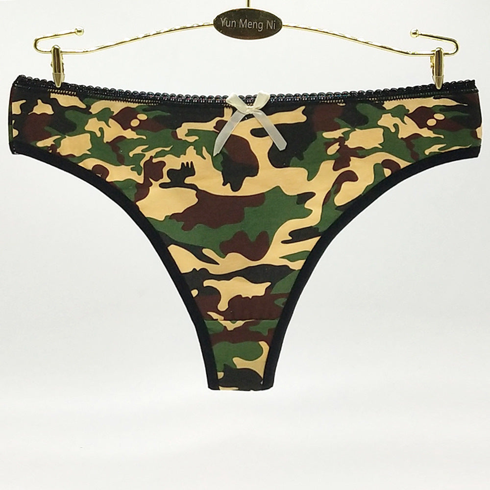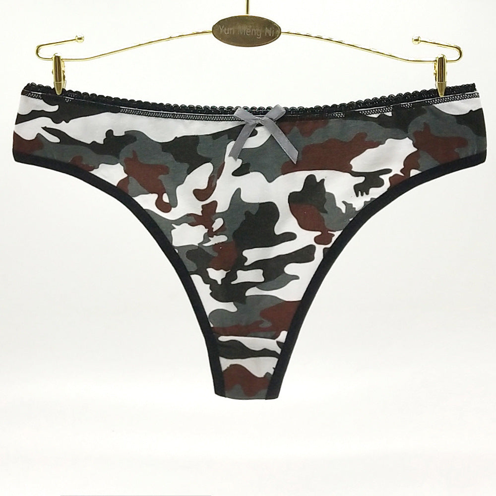 Foreign Trade Sexy Camouflage Women's T-back Cotton Low Waist Spot Women's Underwear