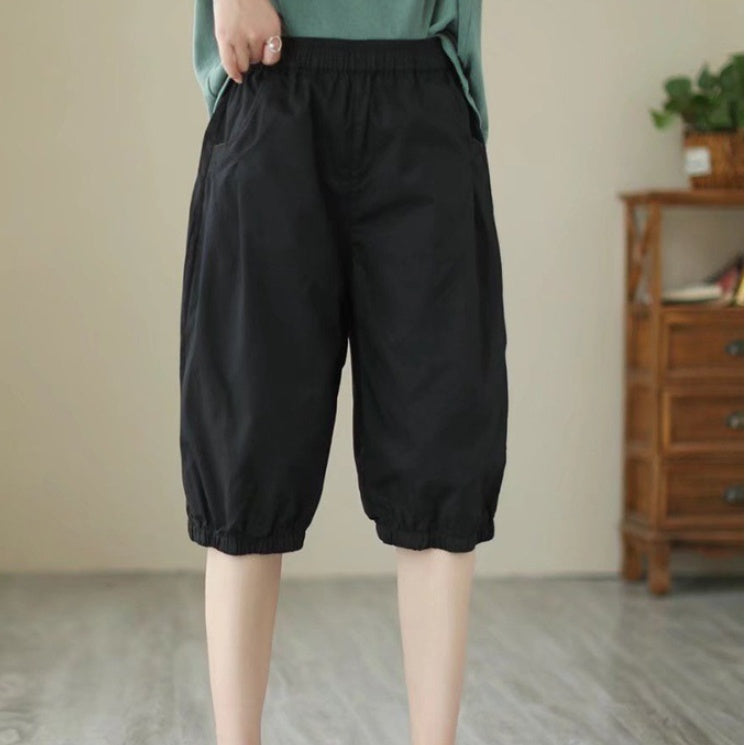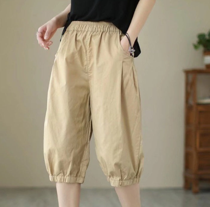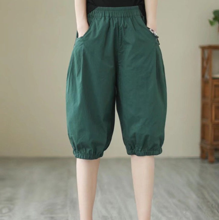 Women's Candy Color Cotton Casual Cropped Pants