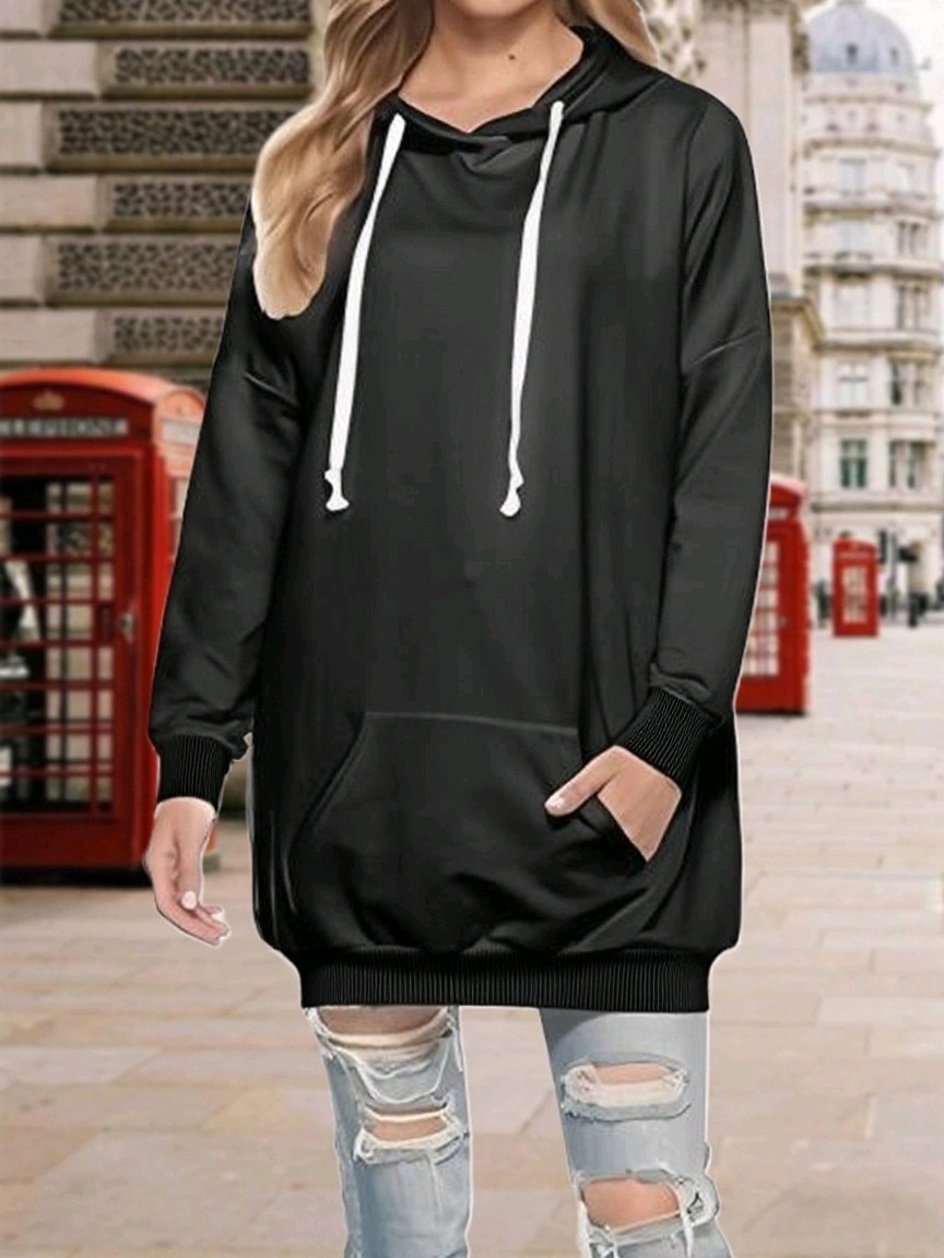 Women's Hooded Pocket Long Sleeve Sweatshirt